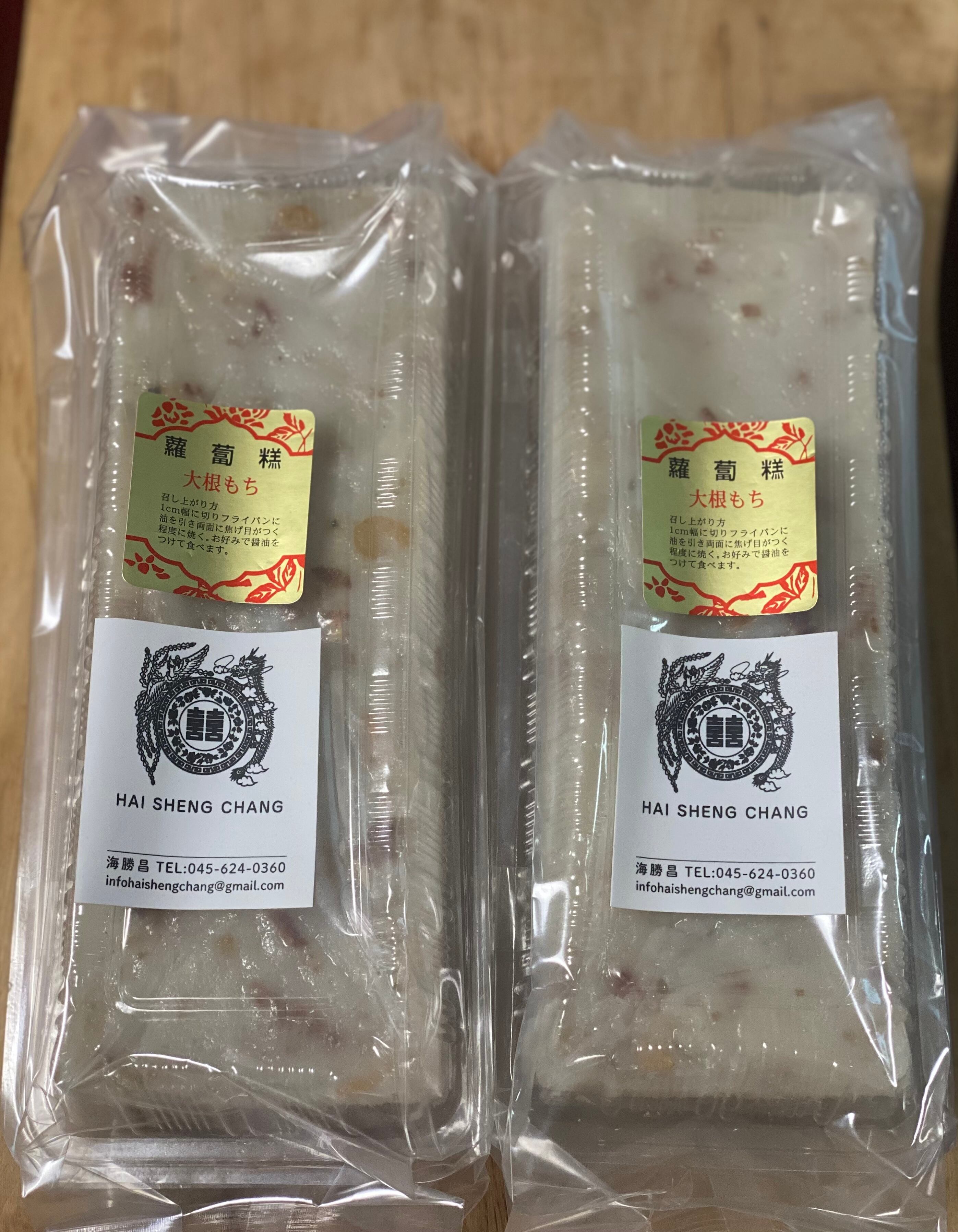 【原材料名】 大根(国産)、上新粉、澱粉、浮き粉、焼豚、香腸、干し海老、砂糖、植物油脂、食用大豆油、食塩、香辛料/酒精、調味料(アミノ酸等)他(一部に小麦・海老・豚肉・大豆・ごまを含む)